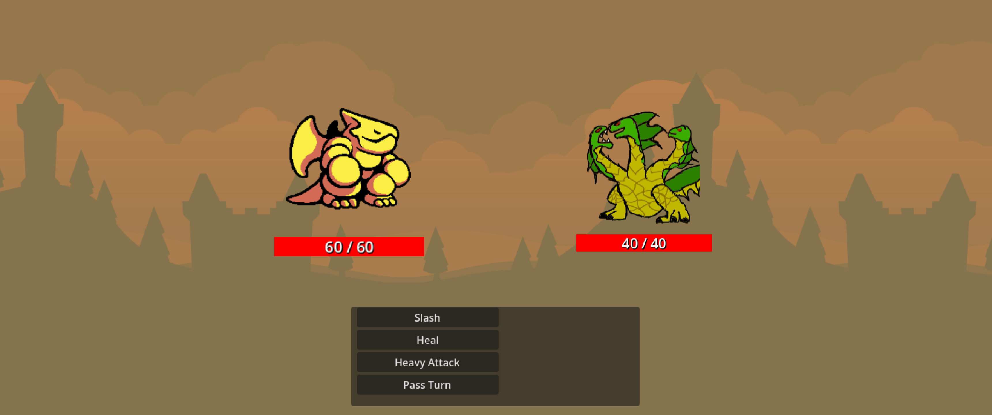 Press Play and choose options to either deal damage, pass turn, or heal character Enjoy!